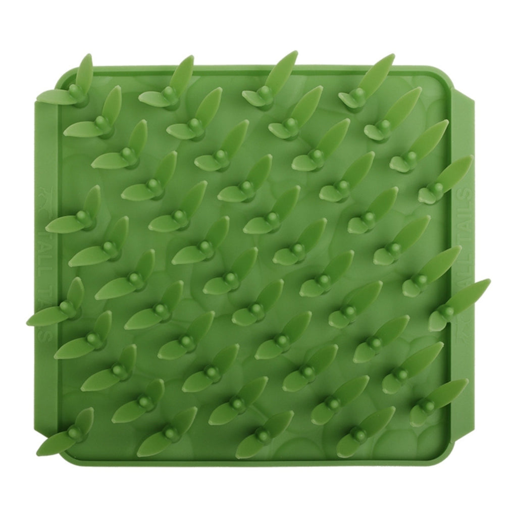 Taste the fun with Tall Tails' Foraging Mat for Dogs. A silicone slow feeder for dogs, this foraging mat encourages slower eating for better digestion. It's easy to use with your dog's favorite foods, like kibble, wet foods, spreadables, and treats. We even included a skid resistant bottom for active eaters. For even more fun, we've made each mat with overlapping edges to join the entire collection together!